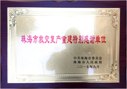 9月,中共珠海市委市人民政府授予綠友集團(tuán)“珠海市救災(zāi)重建特別感謝單位”榮譽(yù)稱號。