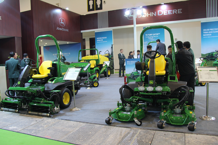 綠友展出了約翰迪爾系列剪草機(jī)、球場(chǎng)工作車(chē)等設(shè)備,亨特灌溉設(shè)備,GREENMAN四座系列、兩座系列球車(chē),GEENMAN泵站以及打藥機(jī)、壓輥機(jī)等自產(chǎn)設(shè)備。