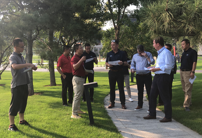 先正達專業(yè)環(huán)境部草坪與園林業(yè)務全球市場總監(jiān)Mr? Mark、公共衛(wèi)生全球業(yè)務總監(jiān)Mr? Andy、亞太區(qū)業(yè)務總監(jiān)Mr? Mick、中國區(qū)業(yè)務總監(jiān)端木瑞康先生以及中國區(qū)草坪與園林業(yè)務經理潘全山先生、中國區(qū)市場經理楊春明先生也一同訪問了綠友集團。