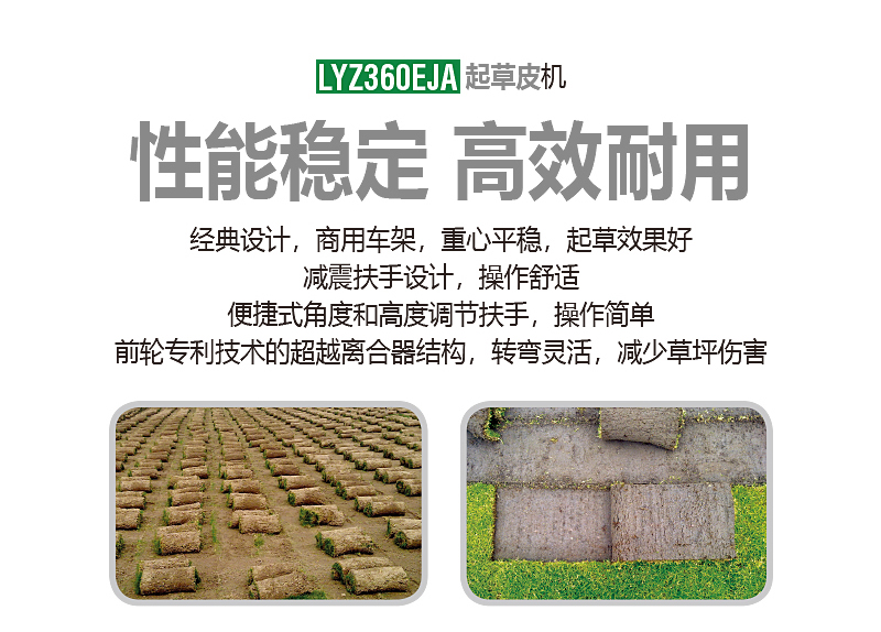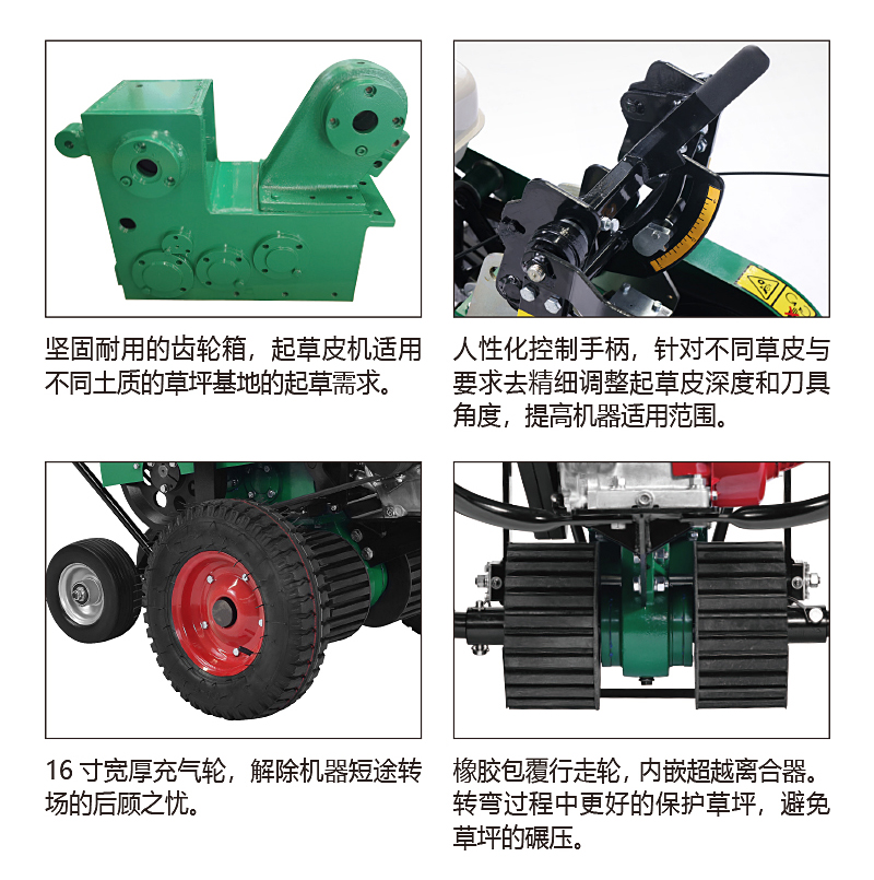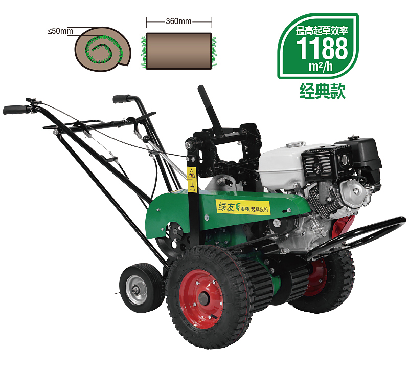 美神起草皮機根據人體工程學原理,改進了操作方式,扶手增加減震,后輪為萬向輪并配有超越離合器,轉彎方便且不損壞草坪,增加了操作者舒適度。本產品可根據不同草種和不同狀態(tài)草皮隨意調整起草的深度、角度,效率高。